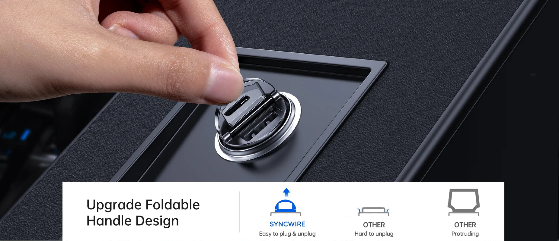 The subtle blue LED light helps you locate the phone charger in the dark, enhancing usability and safety while driving.
