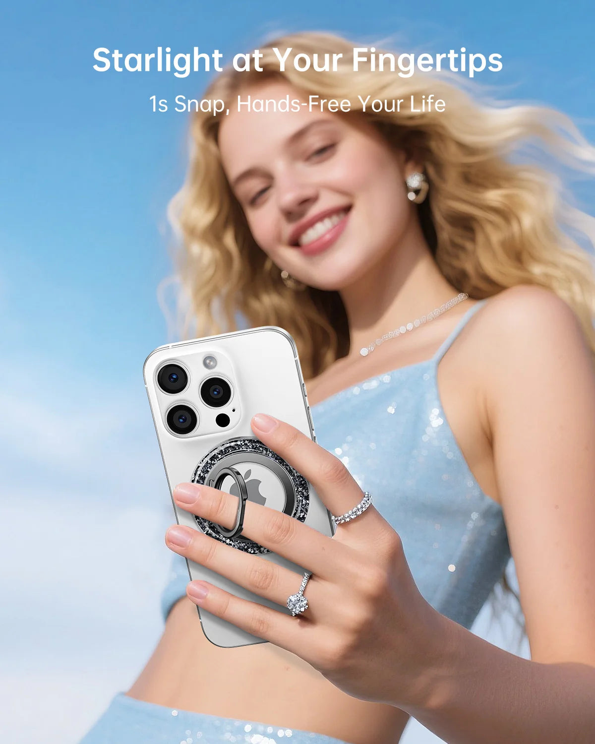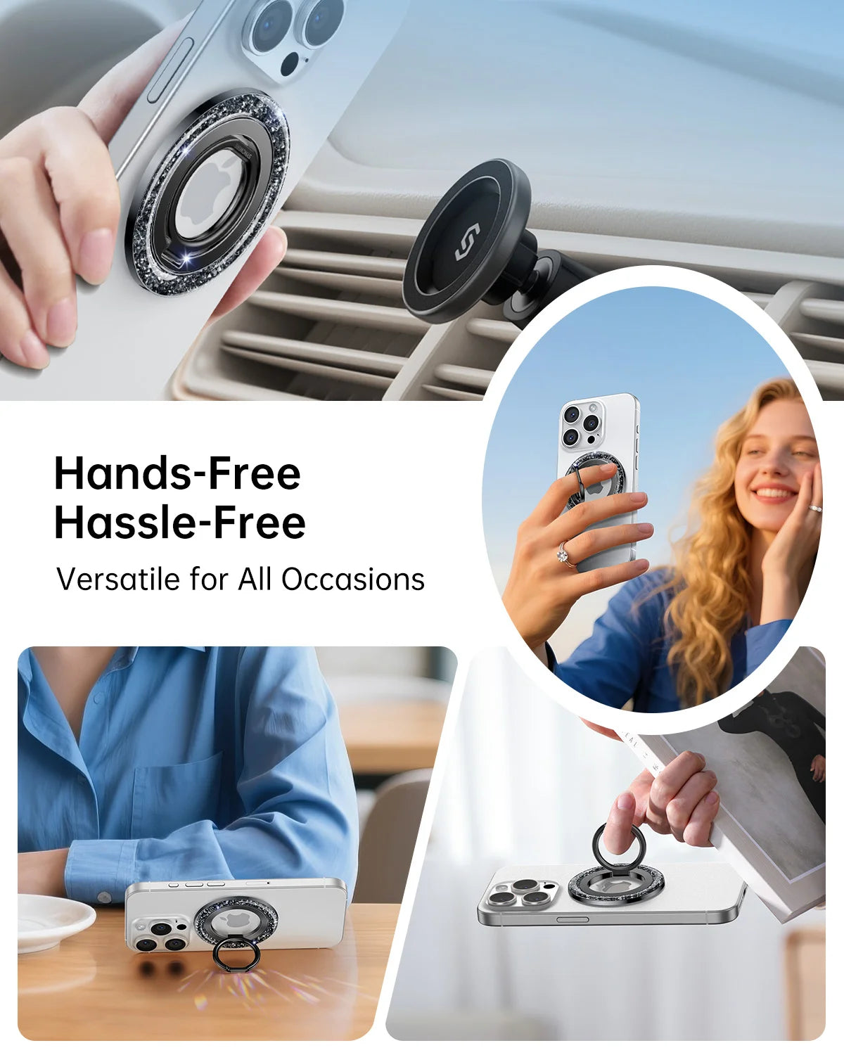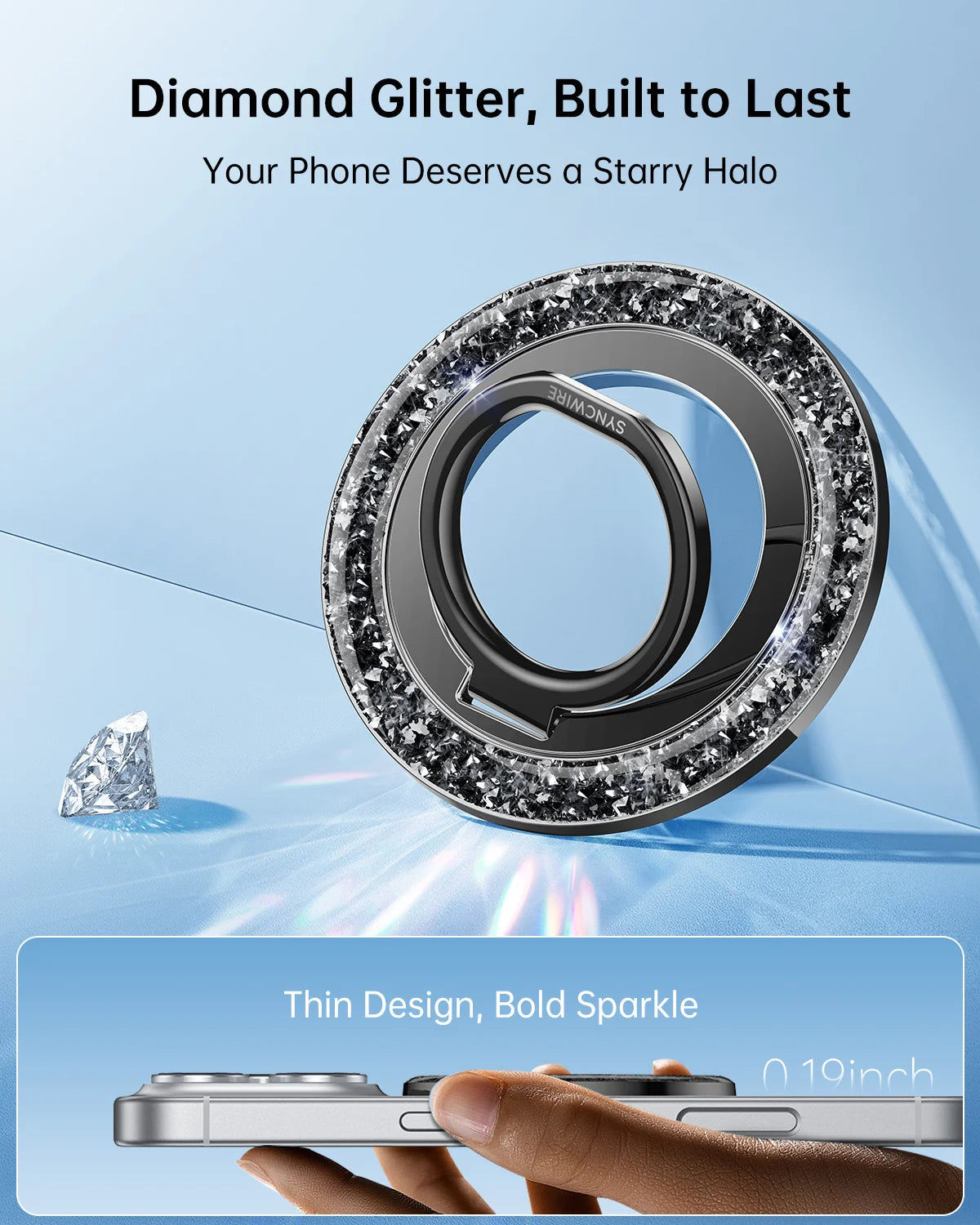 - Glitter Magnetic Phone Grip: Syncwire Glitter Magnetic phone ring holder makes a perfect combination of fashion and functionality. Crafted with a magnetic design, it seamlessly attaches to MagSafe compatible cases, ensuring your phone stays securely in hand. The glittery is eye-catching, offering a touch of luxury to daily device usage. It is a good gift for your wife, daughter, mother, aunt, families, girlfriend, friends or yourself.